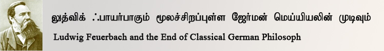 Note: E. The full title of this book by Marx and Engels is: Die Heilige Familie oder Kritik der kritischen Kritik. Gegen Bruno Bauer und Konsorten (The Holy Family, or a Criticism of Critical Criticism. Against Bruno Bauer and Co.). It was originally published in Frankfort on the Main in 1845. . ------------ மற்றொரு விஷயத்தையும் நாம் மறக்கக் கூடாது; ஹெகலியவாத மரபு சிதறிப் போனாலும், ஹெகலியவாத மெய்யியல் விமர்சனத்தின் மூலமாக முறியடிக்கப்படவில்லை. ஷ்ராவுசும் பௌவரும் (Strauss and Bauer) அதன் பக்கங்களில் ஒவ்வொன்றை எடுத்துக் கொண்டார்கள், விவாதத்தில் எதிரும் புதிருமாக நிறுத்தினார்கள். ஃபாயர்பாக் அமைப்பை சிதறடித்து விட்டு அதை உதறி விட்டார். ஆனால் ஒரு மெய்யியல் போலியானது என்று சொல்வது மட்டுமே அதை தீர்த்துக் கட்டுவதாகாது. ஹெகலியவாத மெய்யியலை போன்ற வன்மையான படைப்பை -அது நாட்டின் அறிவுரீதியான வளர்ச்சியில் மிகப் பெரிய தாக்கத்தை ஏற்படுத்தியிருக்கிறது- சாதாரணமாக புறக்கணிப்பதன் மூலம் தீர்த்துக் கட்டிவிட முடியாது. அதன் அர்த்தத்திலேயே அதைக் "கரைக்க" வேண்டும், அதாவது விமர்சனத்தின் மூலம் அதன் வடிவத்தை அழிக்க வேண்டும், அதனால் சாதிக்கப்பட்டிருக்கும் புதிய உள்ளடக்கத்தை காப்பாற்ற வேண்டும். அது எவ்விதம் நிறைவேற்றப்பட்டது என்பதைக் கீழ்வரும் பகுதியில் காண்போம். ஆனால் இதற்கிடையில் 1848ம் வருடப் புரட்சி, ஃபாயர்பாக் ஹெகலை ஒதுக்கியதை போலவே, மொத்த மெய்யியலையுமே எந்தச் சடங்குமில்லாமல் ஒதுக்கியது. இந்த நிகழ்வுப்போக்கின் போது ஃபாயர்பாகும் பின்னணிக்கு தள்ளப்பட்டார். Part 2: Materialism அனைத்து மெய்யியலின்-குறிப்பாக, மிகவும் நவீன கால மெய்யியலின்-மாபெரும் அடிப்படையான பிரச்சினை சிந்தனைக்கும், இருப்புக்கும் (Thinking and Being) இடையே உள்ள உறவைப் பற்றியதே. மிகவும் முந்திய தொடக்க காலங்களில், தங்களுடைய உடல்களின் கட்டமைப்புகளைப் பற்றி இன்னும் மனிதர்களுக்கு எதுவுமே தெரியாதிருந்த காலத்தில் கனவுத் தோற்றங்களை விளக்க இயலாதபடியால்* தங்களுடைய சிந்தனையும் உணர்வுகளும் தங்கள் உடல்களின் செயல்களல்ல, ஆனால் உடலில் வசிக்கின்ற, மரணத்தின் போது அதிலிருந்து வெளியேறுகின்ற விசேஷமான ஆன்மாவின் செயல்கள் என்று நம்பியதிலிருந்து, அந்தக் காலத்திலிருந்து இந்த ஆன்மாவுக்கும் வெளி உலகத்துக்குமிடையே உள்ள உறவுகளை பற்றிச் சிந்திக்கும்படி மனிதர்கள் தூண்டப்பட்டிருக்கிறார்கள். மரணத்தின் போது அது உடலை விட்டுப் பிரிந்து தனியே வாழ்ந்தது என்றால் அதற்கு மேலும் மற்றொரு தனித்த மரணத்தை கண்டுபிடிக்க வேண்டிய காரணமில்லை. ஆகவே அதன் அழிவற்ற தன்மை பற்றிய கருத்து தோன்றியது. அது வளர்ச்சியின் அந்தக் கட்டத்தில் ஒரு ஆறுதலாகத் தோன்றவில்லை, சிறிதும் தவிர்க்க முடியாத விதியாகத் தோன்றியது; பெரும்பாலும் -கிரேக்கர்கள் மத்தியில் இருந்ததைப் போல- உறுதியான துன்பமாக இருந்தது. ஆன்மா இரு