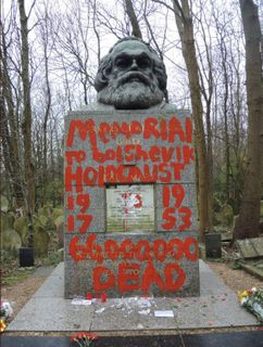 Cuma gecesi, Marx'ın büyük bronz büstünü destekleyen granit kaideye, komünizm karşıtı sloganlar yazıldı. Bu, faşistlerin son iki hafta içindeki ikinci saldırısıdır.