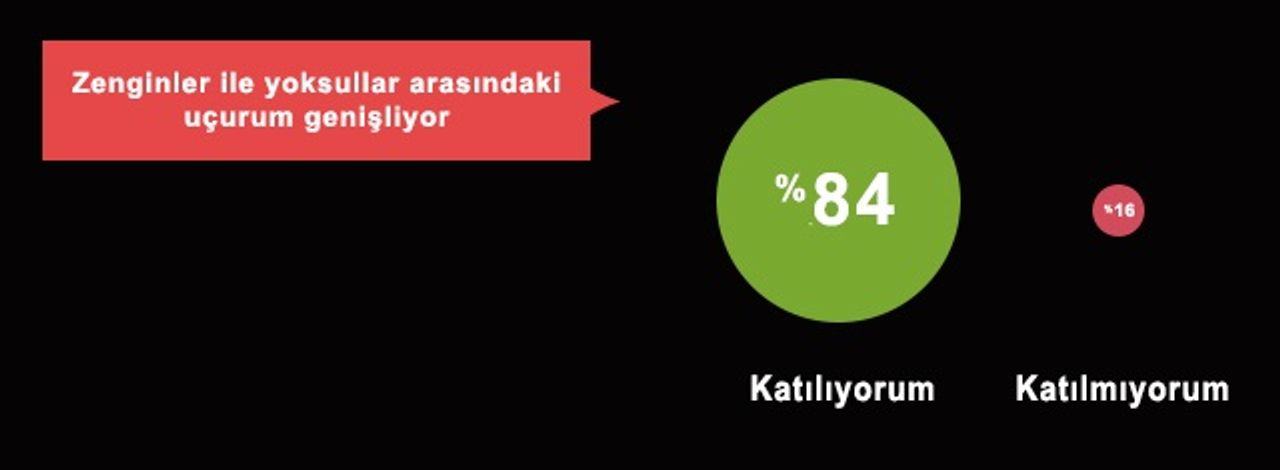 Aynı şekilde, katılımcılara “zenginler ile yoksullar arasındaki uçurum”un genişleyip genişlemediği sorulduğunda, yüzde 89 “evet” yanıtı verdi.