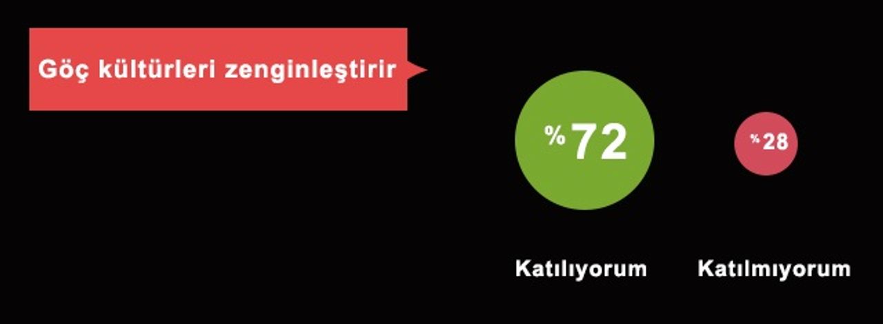 Bu anket ise oldukça farklı bir sonuç gösteriyor. “Göç, kültürleri zenginleştirir mi?” sorusuna, katılımcıların yaklaşık dörtte üçü “evet” yanıtı verdi.