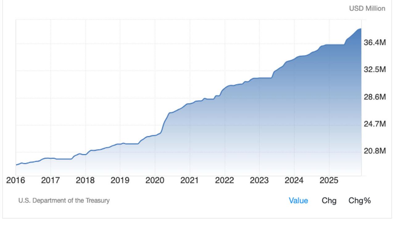 Devlet borçlanması ise çok daha keskin arttı. Elli yıl önce, 1975’te, Bretton Woods sisteminin çöküşünün ardından ve finansallaşma sürecinin başlangıcında, ulusal borç 533 milyar dolardı. 1985’e 1,8 trilyon dolara, 2005’te 7,9 trilyon dolara ulaştı. 2008 krizine yanıt olarak Merkez Bankası’nın (Fed) Wall Street’i kurtarma paketlerinin ardından ulusal borç patlama yaşadı. 2015’te 18,1 trilyon dolara ulaştı. 2020’de, pandeminin başlaması ile Wall Street için bir başka kurtarma operasyonunun ardından borç 27 trilyon dolara ulaştı. 2025 yılı itibarıyla ulusal borç 38 trilyon dolar. Sadece yıllık faizi 1 trilyon dolar civarında. Yarım yüzyıl içinde ulusal borç yaklaşık yüzde 6.000 artarken aynı dönemde GSYİH sadece yüzde 1.321 büyüdü.